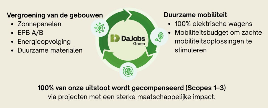 Bewust van de ecologische voetafdruk die een bedrijf met meer dan 70 JobCenters kan hebben, nemen we maatregelen om deze te verminderen. Alleen al op het hoofdkantoor hebben we geïnvesteerd in slimme thermostaten, zonnepanelen en groene energie voor al onze ruimtes.